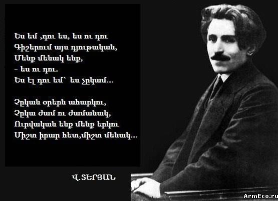 «Վահան Տերյանը այն բախտավոր հեղինակներից էր, որոնք մի առավոտ զարթնում են հայտնի դարձած, և դա ոչ թե պատահականության բերումով, այլ շնորհիվ իրենց մեծ տաղանդի: